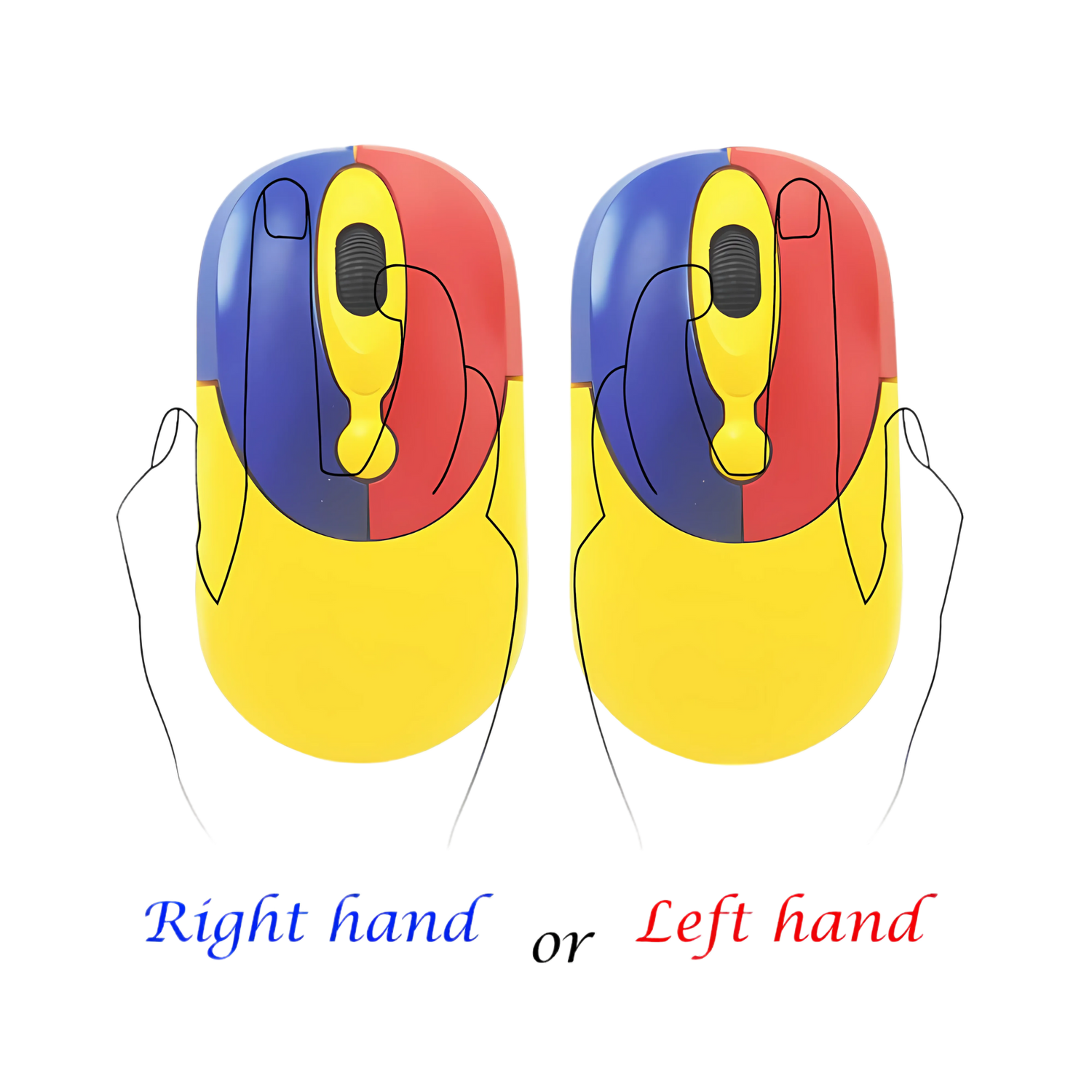 Specifically designed for a childs small hand Features brightly coloured Yellow body with bright Blue Left and Red Right click buttons and clear plastic scroll wheel, to teach young children the differences when learning to use the computer in the class room or at home.
