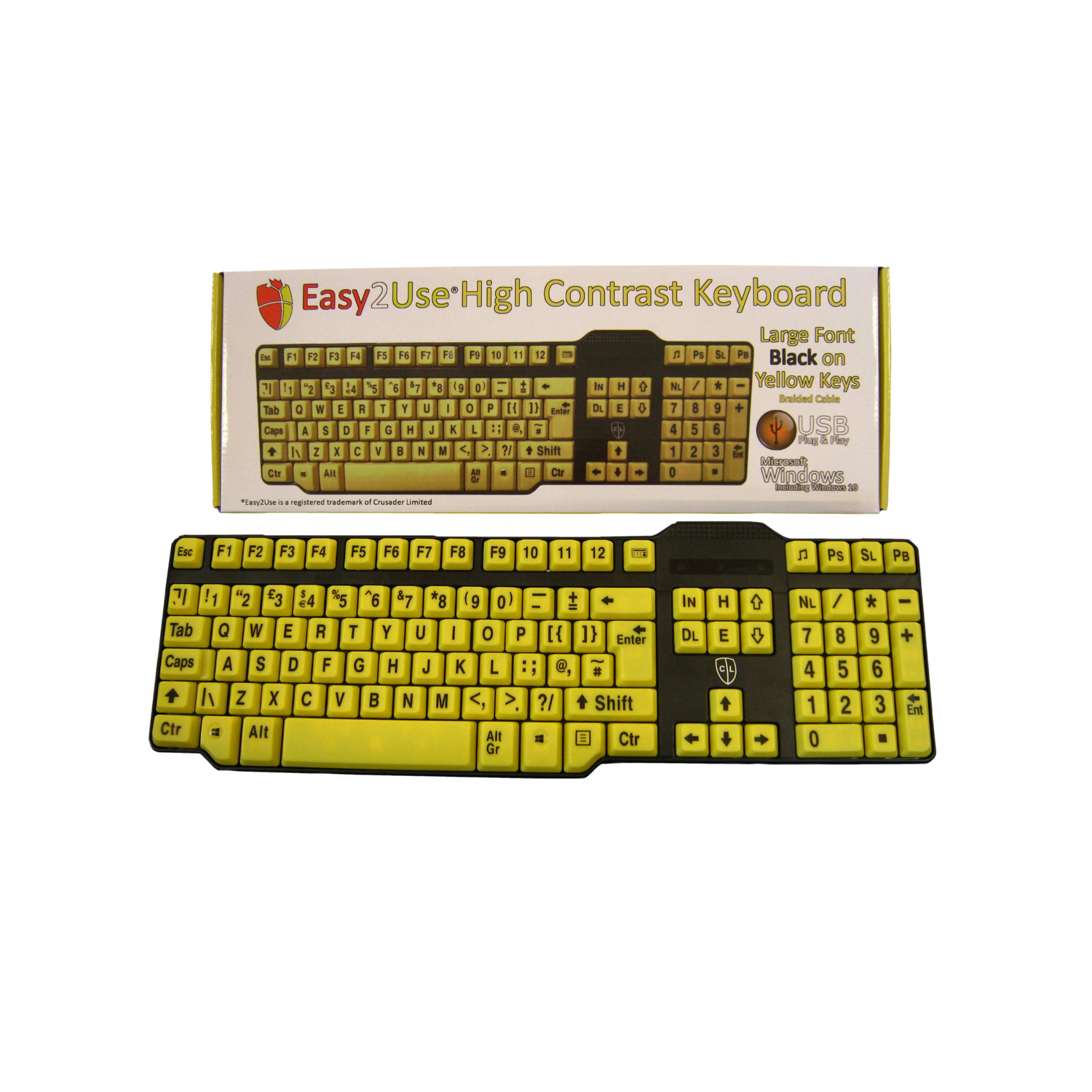 Easy2Use USB Keyboard with Braided Cable - Large Black Font on Yellow Keys