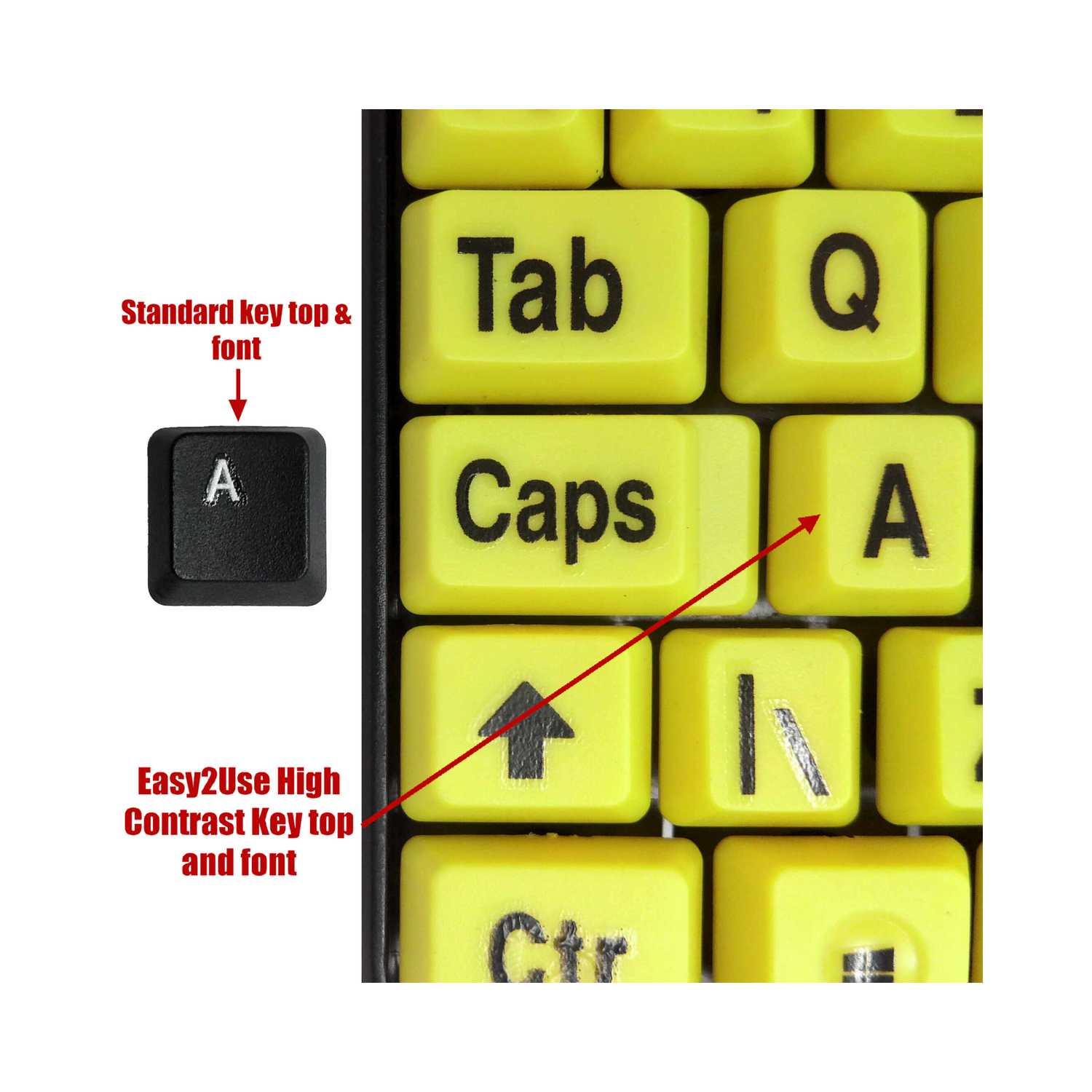 This keyboard plugs directly in to your computer via a USB cable. This keyboard offers an ideal solution for those who find using a keyboard with small keys and text difficult. The bold, black characters on the yellow keys make it easier for everyone to read - especially those with less-than-perfect vision.